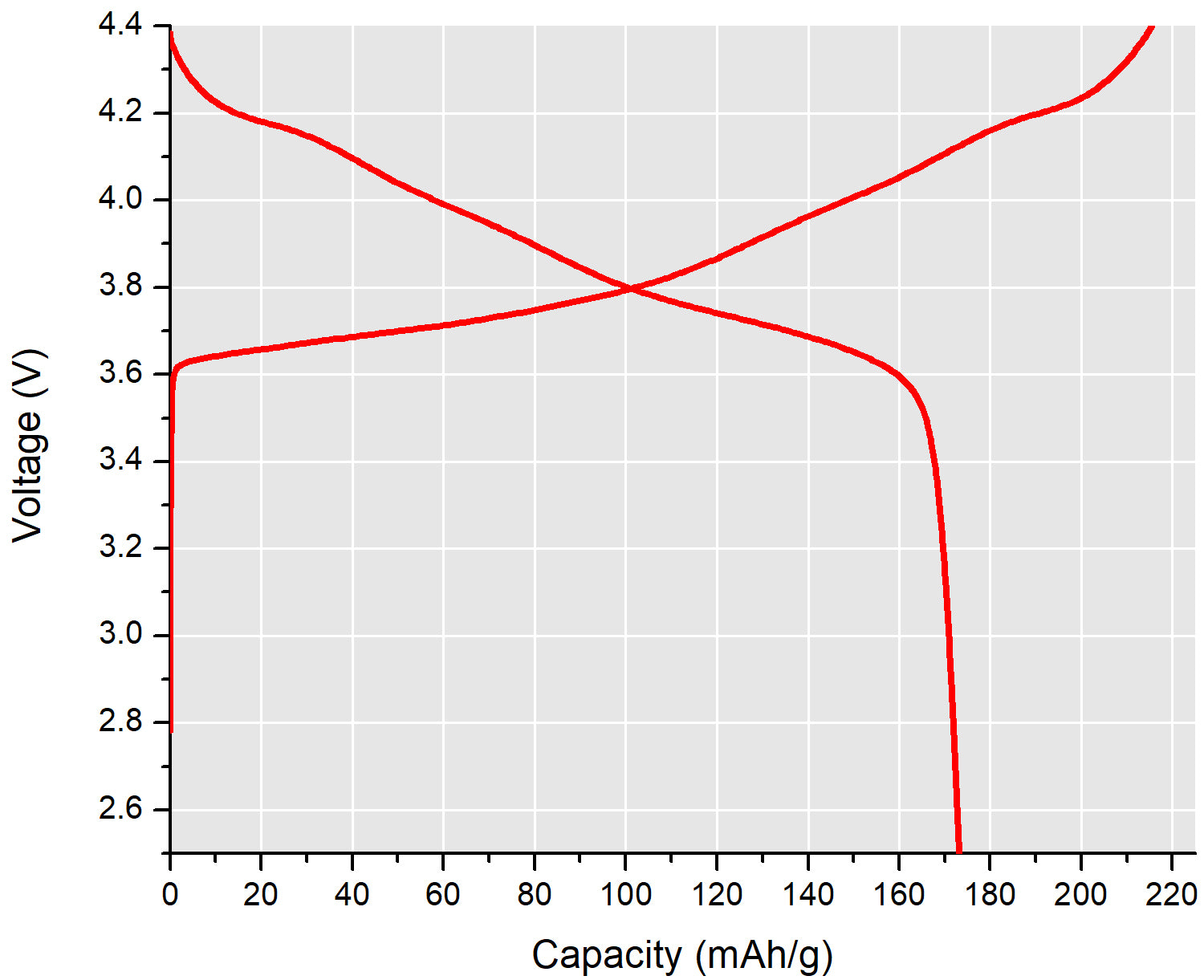 - Discharge Capacity ~172 mAh/g (vs. Li, C/20, 2.5-4.4V)