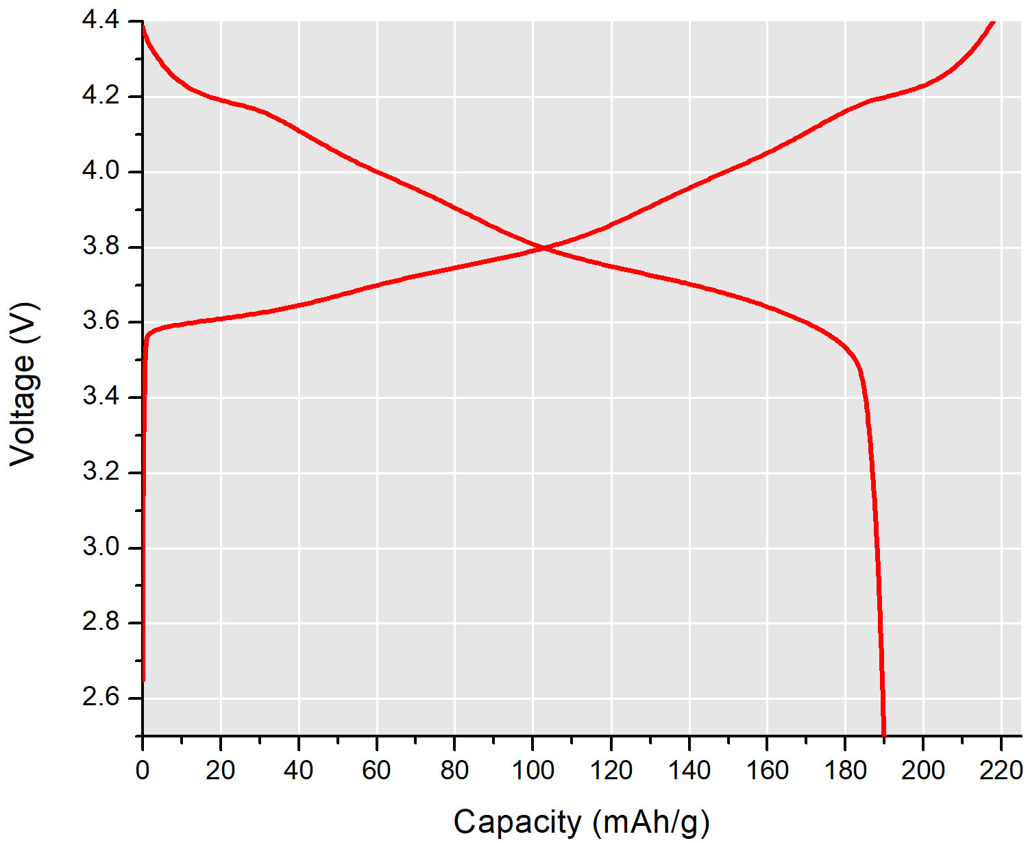 - Discharge Capacity ~190 mAh/g (vs. Li, C/20, 2.5-4.4V)